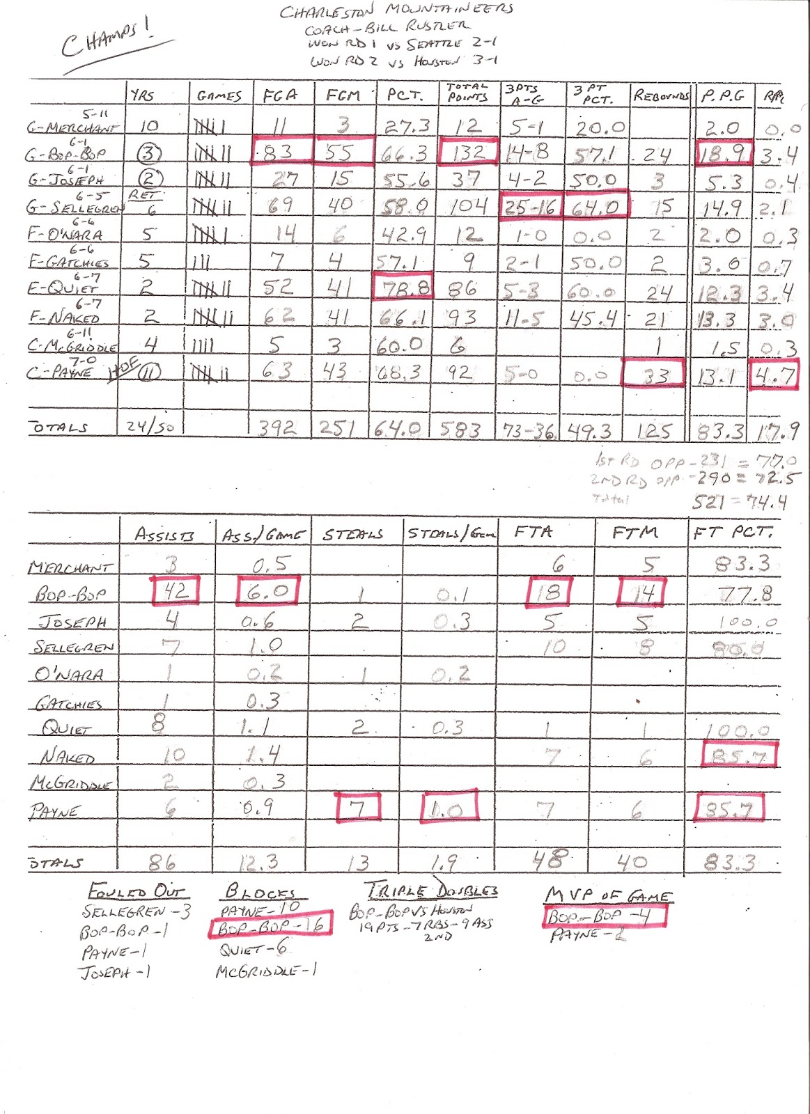 ** The 83.3 points per game scoring average by Charleston is tied for the fourth highest average ever and it is the highest since Season 31 when Philadelphia racked up 83 points per game. The top playoff scoring teams ahead of (and tied with) Charleston are:
